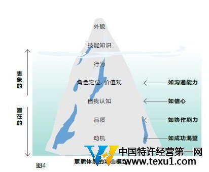 心理學(xué)家麥克利蘭于1973年提出了素質(zhì)體系的冰山模型,個體的素質(zhì)按不同的顯現(xiàn)程度分為較外露的“水面以上部分”和深藏的“水面以下部分”。(圖4)在面試過程中,市場上流行的技能筆試、性格測試、無領(lǐng)導(dǎo)小組等方法,都是想對“水面下部分”做出全面的了解。