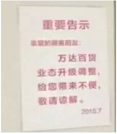 日前,萬達百貨在全國閉店、壓縮的消息在微信圈廣泛傳播,雖然消息沒有得到官方證實,但對于萬達百貨大調整的關注度越來越高。而就在此時,濟南萬達百貨發出《重要告示》要求商鋪撤柜,或證實了萬達百貨調整行動……