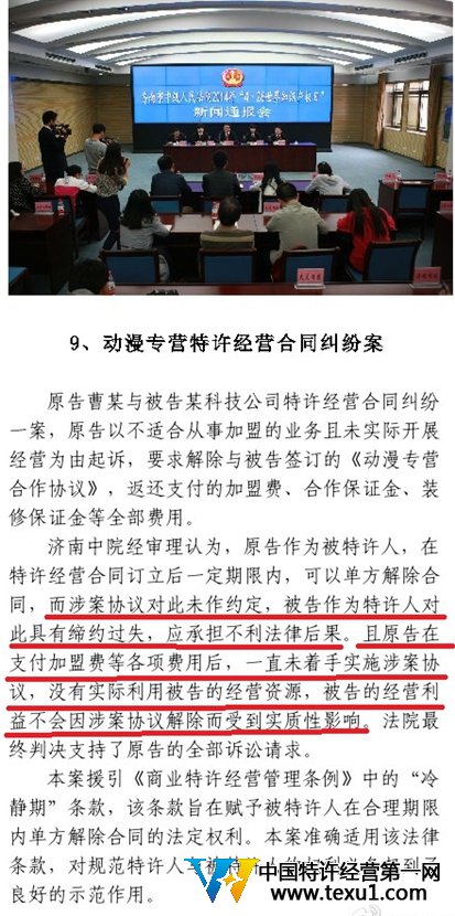 剛剛在@濟南中院 的微博里看到其公示的一個關于特許經營案件的宣判結果,如下: