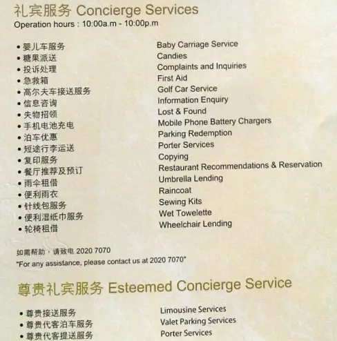 購物中心內(nèi)共13個服務賓客臺,22項服務。