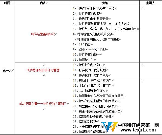 參營對象:1、所有連鎖特許經營企業的董事長、總經理、運營總監及中層管理者;2、希望快速、高效、大規模、低成本擴張現有業務的連鎖店(單店)經營者;3、希望找新的獲利商機的國有、集體、私營企業的總經理、開發經理及管理層;4、特許連鎖加盟創業者。