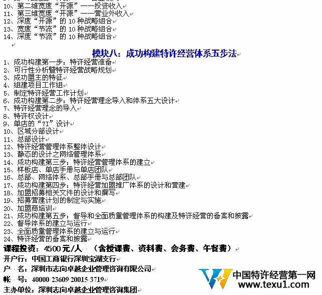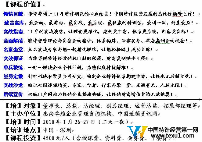 特許班招生:2010年1月深圳之《特許加盟全攻略》