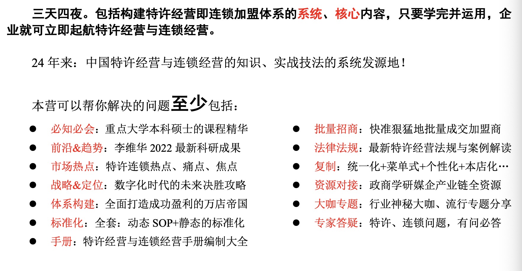 2022年7月“中國特許經(jīng)營總裁班”招生簡章
