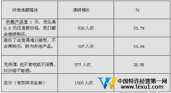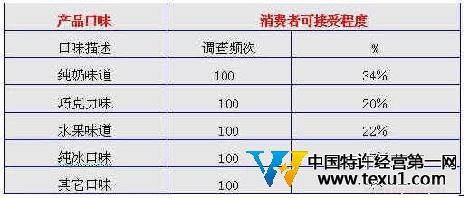 同時我們也作了關于脆皮產品即巧克力風味的冰淇淋在市場上的接受程度調查,如下表: