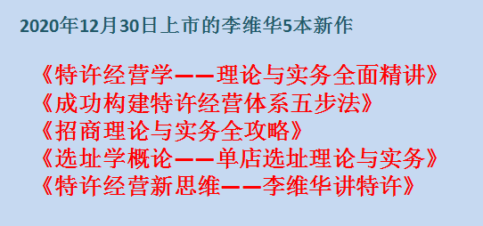 【更全、更新、更詳細(xì)的特許經(jīng)營(yíng)與連鎖經(jīng)營(yíng)知識(shí),請(qǐng)立即關(guān)注并預(yù)定即將于2020年12月30日全國(guó)全面上市的李維華最新5本巨著: