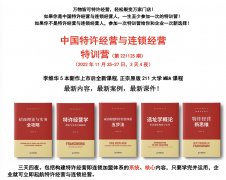 學習更多最前沿、最系統、最全面、最科學、最實戰的特許經營與連鎖經營知識與技法,請立即點擊報名2022年11月25-27日之中國特許經營與連鎖經營特訓營 http://www.1390139.com/plus/view.php?aid=11747
