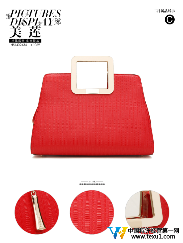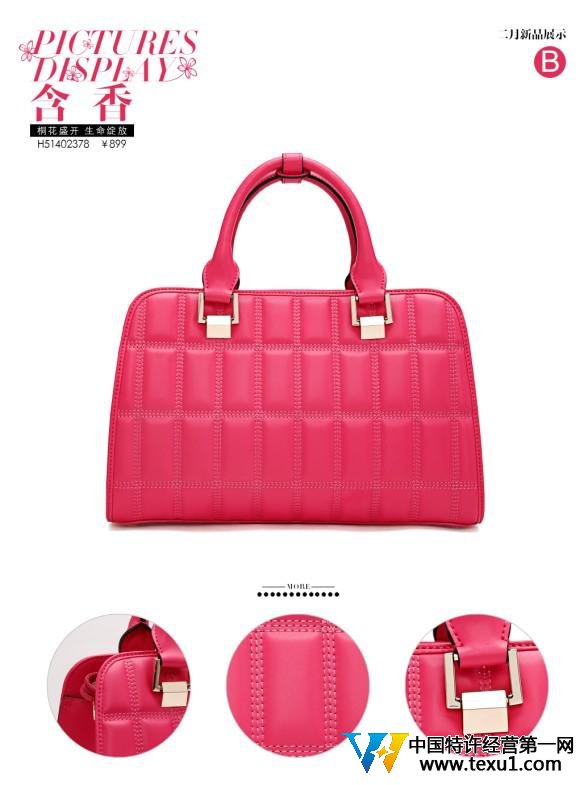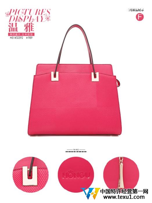 棱格的繡花元素,彰顯女性的優雅與柔美;手袋整體簡潔大方的格調,讓人搭配自如;輕巧的袋身,實用的設計,迎合了新一代年輕女性對簡約時尚的追求。一襲桃紅色,增添一抹甜蜜的色彩。 HONGU紅谷——明美系列