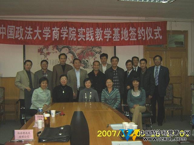 2007年11月9日下午,在中國政法大學辦公樓二層會議室,中國政法大學商學院和友仁居火鍋連鎖、今日視點圖書公司、米奇高國際教育集團、天竺天飾品珠寶公司、優尼洗衣公司、連鎖中國、義利食品公司等七家企業當場簽定實習基地的協議書。