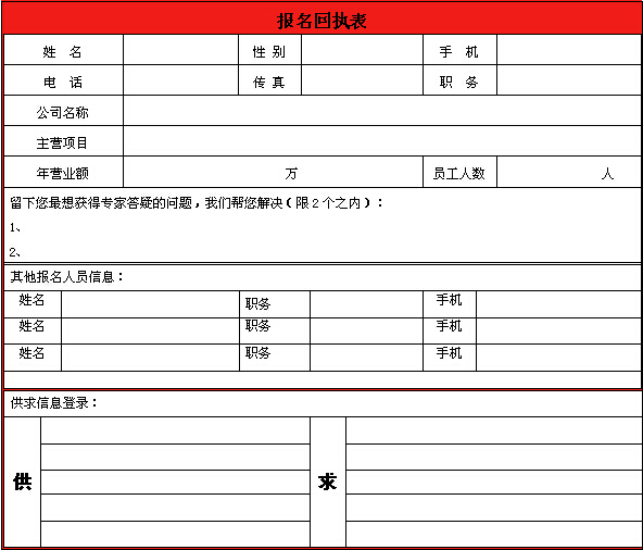 請(qǐng)認(rèn)真、完整填寫此表,回傳至010- 84833858,并在兩日內(nèi)通過銀行付款,款到后即完成報(bào)名手續(xù),謝謝!
