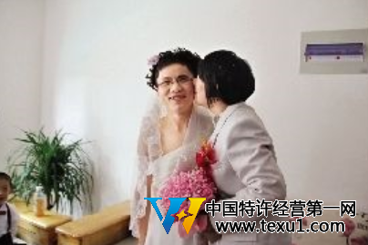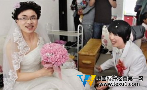 “此時此刻,你們結為恩愛夫妻。從今以后都要心心相印,白頭偕老。”在司儀的煽情講話中,“新郎”馬小姐與“新娘”岳先生互換戒指。
