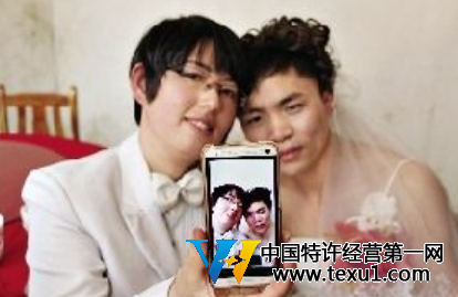 早晨8點,在滑縣新區的家里,來自浙江省金華市31歲的岳先生穿起了婚紗,描眉化妝,翹首以盼來自滑縣的28歲“新郎”馬小姐的迎親車隊。