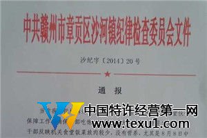 網友上傳的照片顯示,這份紅頭文件是中共贛州市章貢區沙河鎮紀律檢查委員會文件,編號為沙紀字[2014]20號。落款是中共章貢區沙河鎮紀律檢查委員會,日期為2014年8月25日,并蓋有公章。
