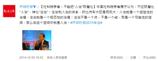 社科院學(xué)者房寧:不應(yīng)妖魔化"人治"神化"法治"