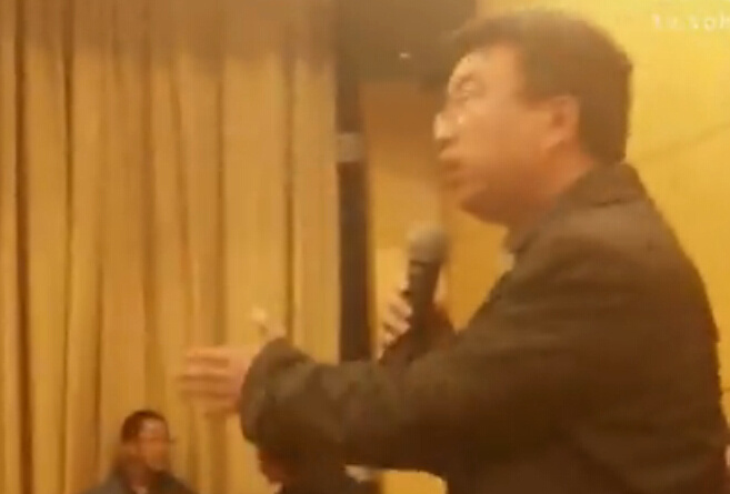 這位“砸場”的復旦教授以專家的派頭與崔永元激辯“黃金大米”問題,被小崔一個問題就問倒了。(視頻截圖)