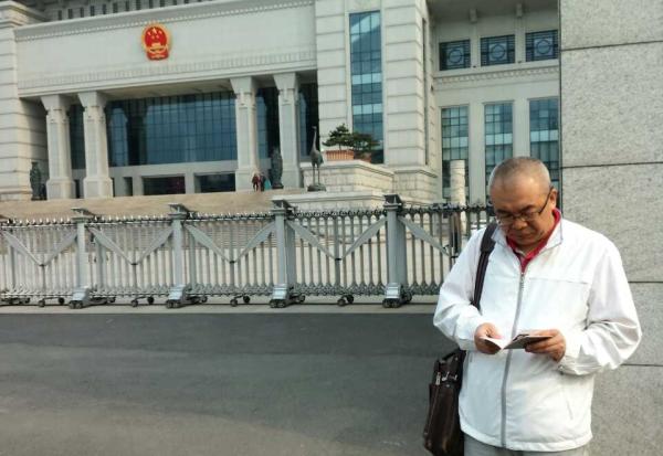 律師李樹亭在山東省高院門前 澎湃新聞記者 周超 圖