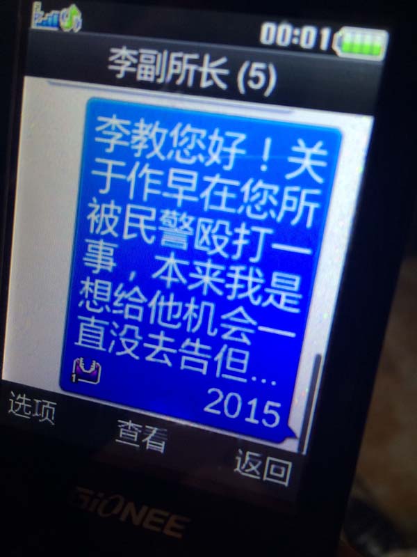 小龍?zhí)杜沙鏊罱虒?dǎo)員短信請(qǐng)求王順文原諒毆打的民警。