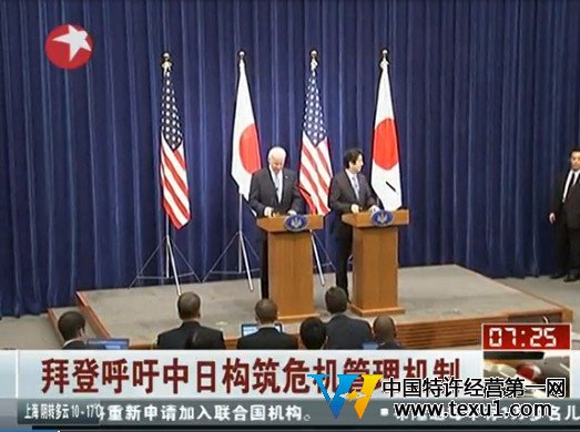 【共同社東京12月3日電】美國(guó)副總統(tǒng)拜登3日上午與日本副首相麻生太郎、自民黨干事長(zhǎng)石破茂、民主黨代表海江田萬(wàn)里等會(huì)談,就中國(guó)劃設(shè)涵蓋尖閣諸島(即我釣魚島及其附屬島嶼)周邊的東海防空識(shí)別區(qū)稱,“這是試圖改變現(xiàn)狀的行為,美國(guó)無(wú)法認(rèn)可。日美將采取統(tǒng)二步調(diào)應(yīng)對(duì)”,表示將直接向中方表達(dá)自身看法。