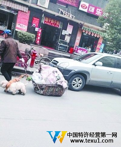 小狗甘當苦力幫拾荒婆婆拉車(圖)