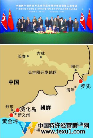 2012年8月13日,朝鮮“二號人物”張成澤率團(tuán)訪華,8月14日,中國商務(wù)部部長陳德銘和朝鮮勞動黨中央行政部部長張成澤共同啟動兩個經(jīng)濟(jì)區(qū)管理委員會。當(dāng)日,中朝共同開發(fā)和共同管理羅先經(jīng)濟(jì)貿(mào)易區(qū)和黃金坪、威化島經(jīng)濟(jì)區(qū)聯(lián)合指導(dǎo)委員會第三次會議在北京召開。雙方一致認(rèn)為,在兩國政府和企業(yè)的共同努力下,兩個經(jīng)濟(jì)區(qū)開發(fā)合作已取得顯著成果,進(jìn)入實(shí)質(zhì)性開發(fā)階段。