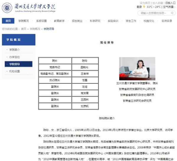 蘭州交通大學(xué)博文學(xué)院官網(wǎng)上陳玲的基本簡(jiǎn)介。