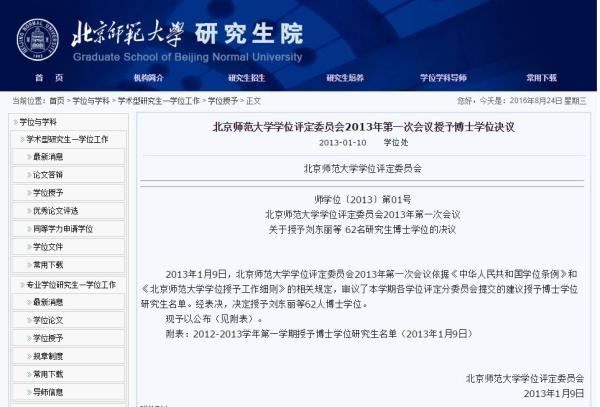 北師大官網(wǎng)上2013年1月被授予博士學(xué)位的人員名單中并沒(méi)有陳玲。